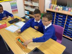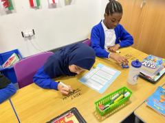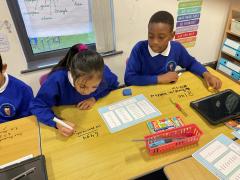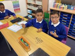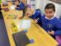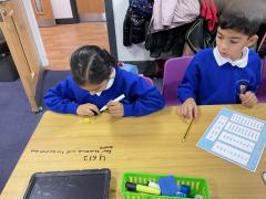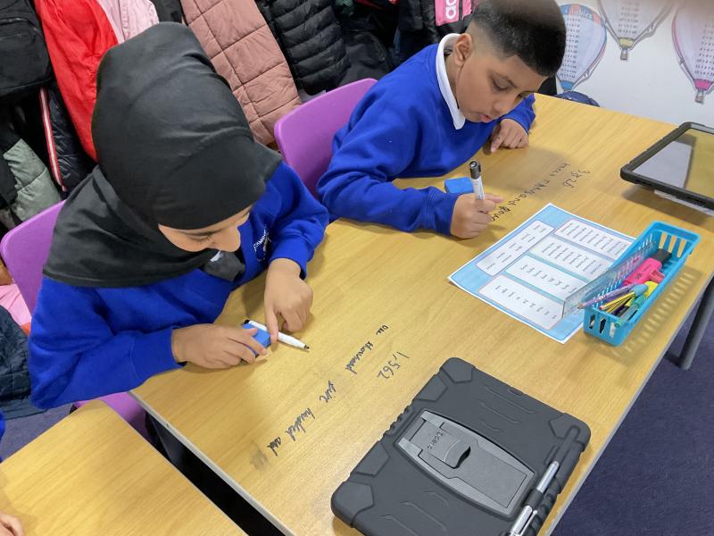 In Garnet class we have been reading and writing numbers. Yes Mrs Long did let us write on the tables.