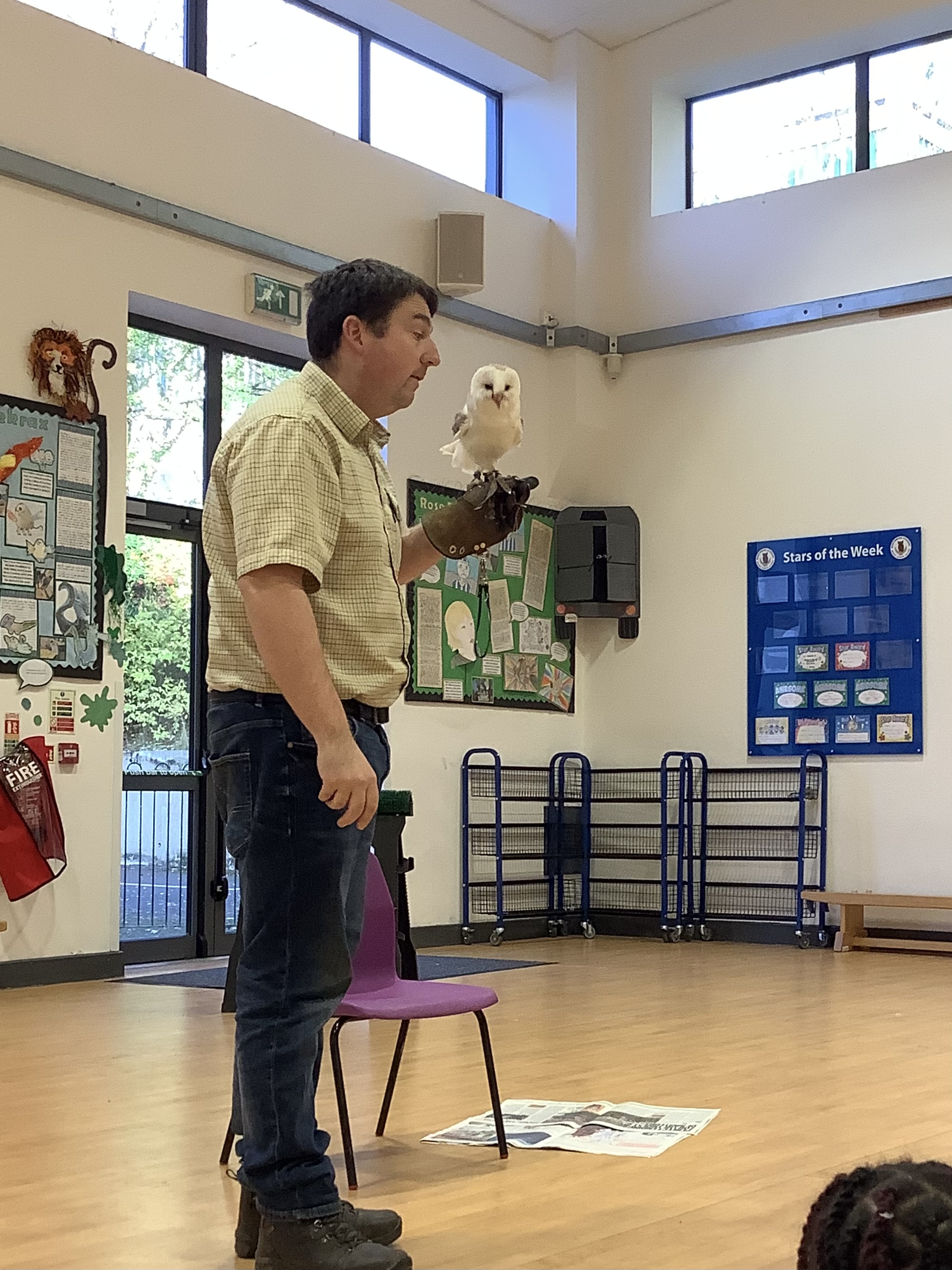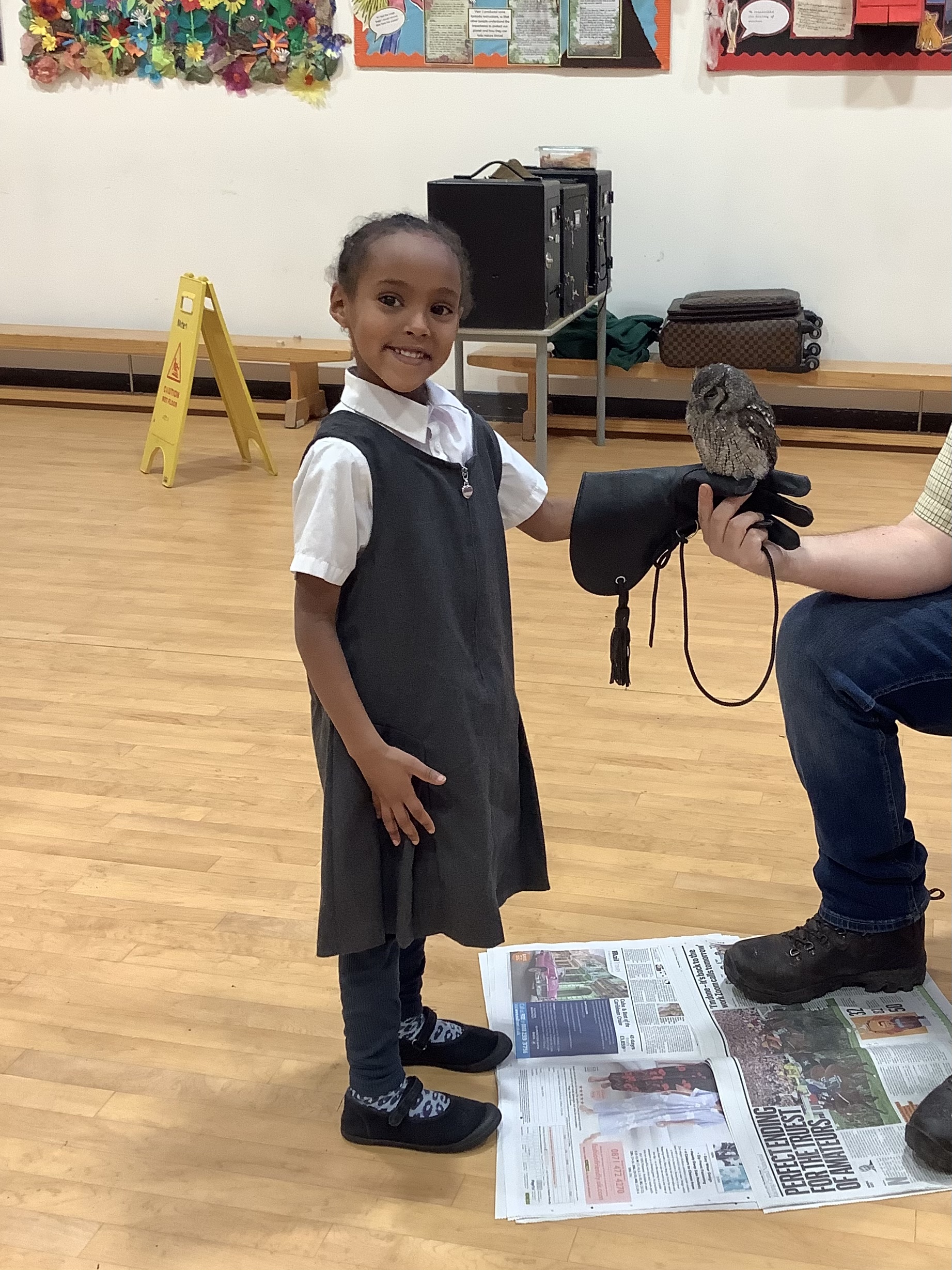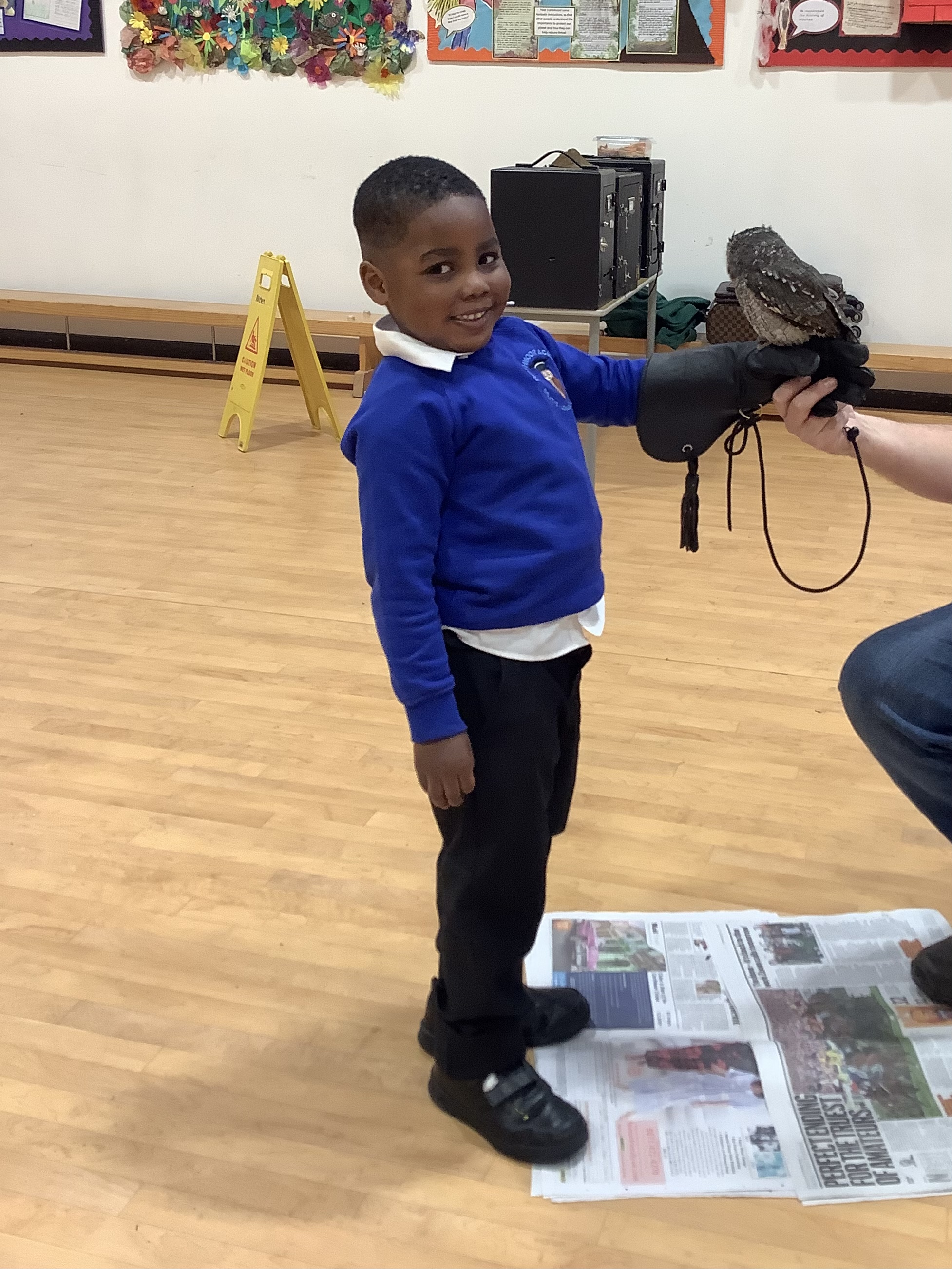 In Reception we had some exciting visitors this week. We met some real life owls. We had lots of fun watching them fly and we even got to hold one.