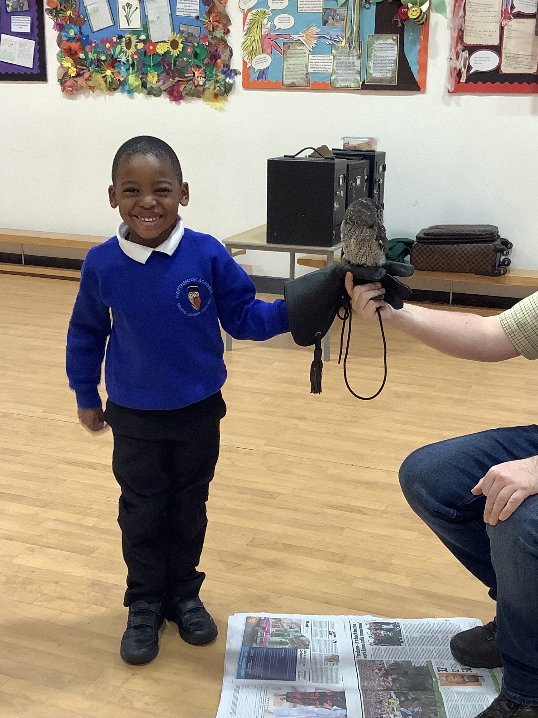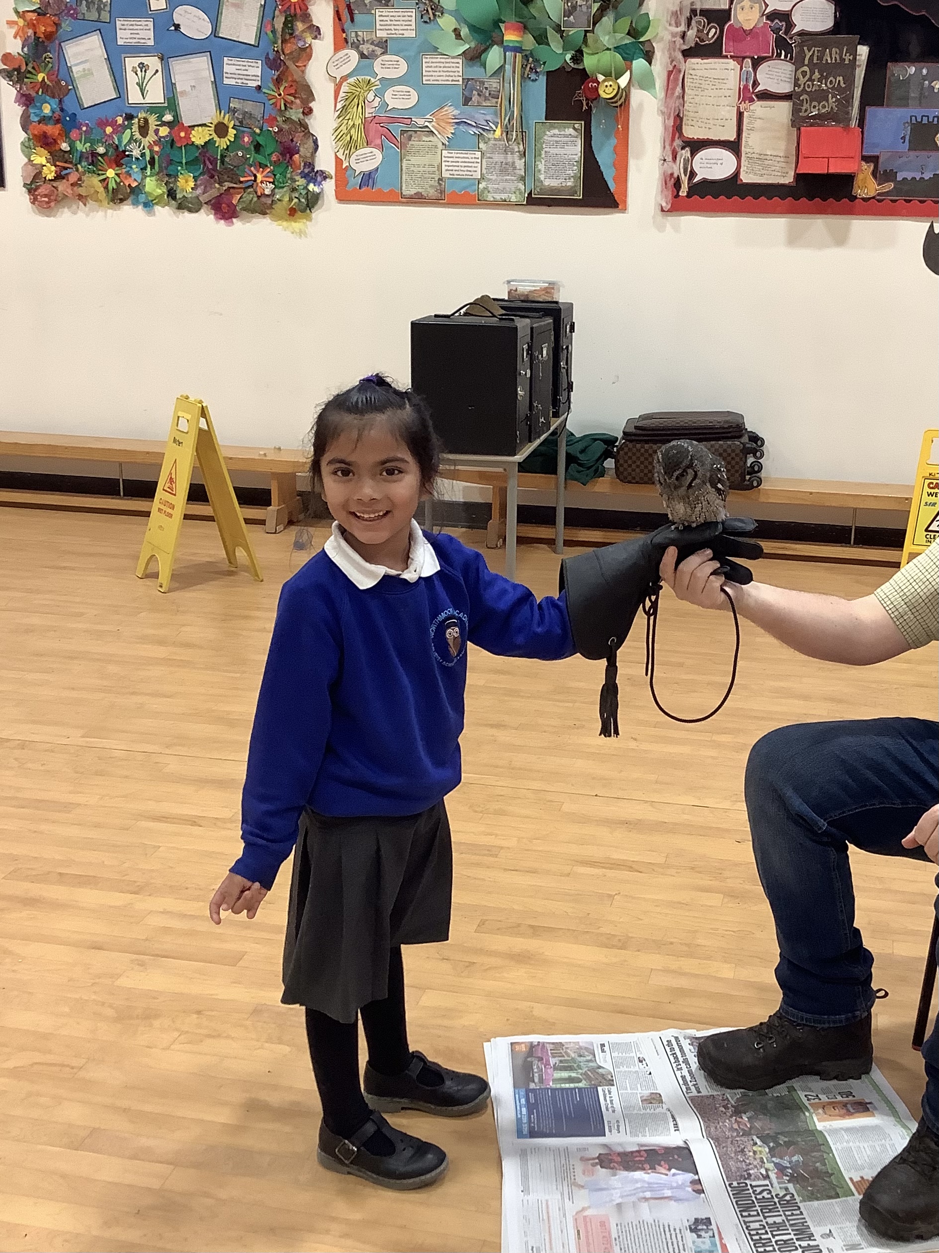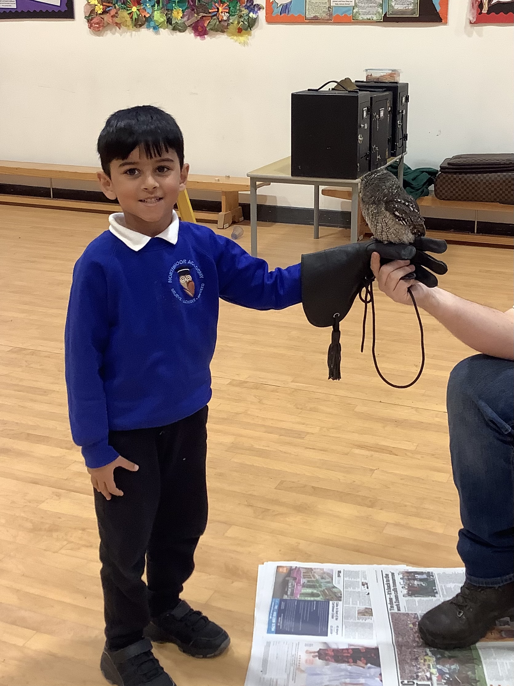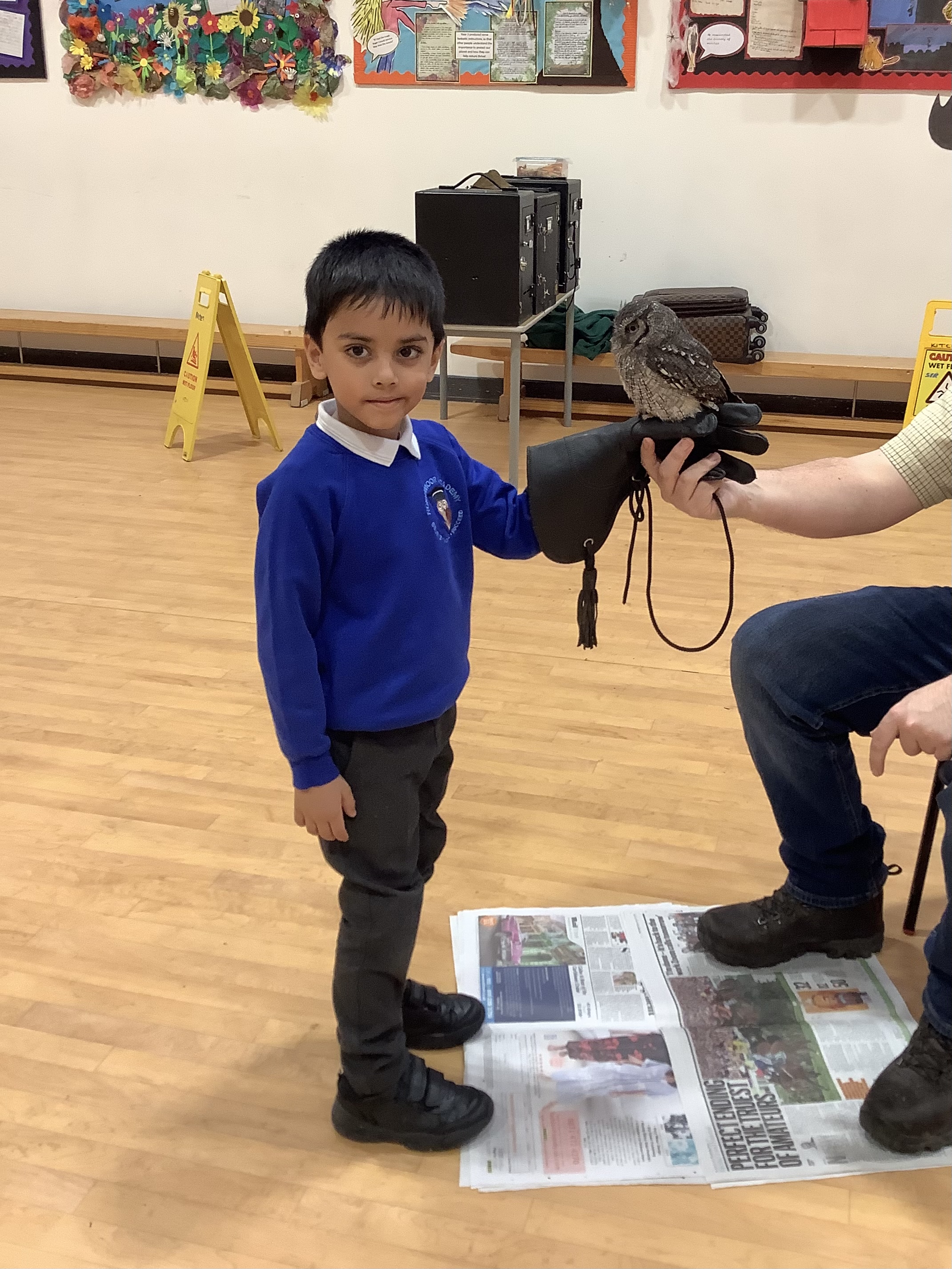 In Reception we had some exciting visitors this week. We met some real life owls. We had lots of fun watching them fly and we even got to hold one.